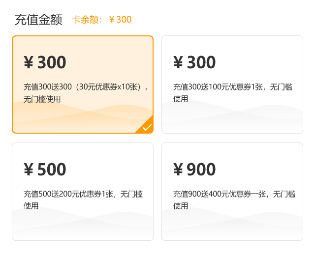 1.设置充值多少送多少(充值300送300,面值30元x10张),让顾客有赚翻了的心理,强烈刺激客户快速充值,并有效培养客户消费习惯