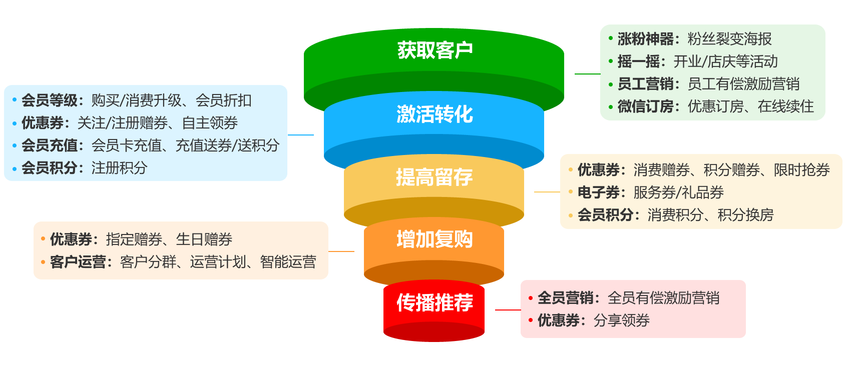 客户可通过购买、积分兑换和累积消费等多种方式升级会员等级,不同等级享受不同折扣,以及免押金和查房等权益,并可获得升级礼包,吸引、培养忠诚客户