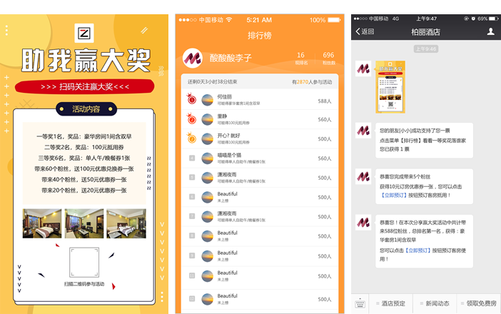 在开业或店庆等活动期间,推出手机“摇一摇”抽奖活动,奖品可设置为优惠券、积分或礼品,吸引客人关注酒店公众号,提高客人参与感和满足感