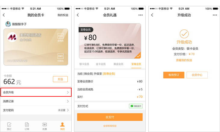 会员等级:购买/消费升级、会员折扣