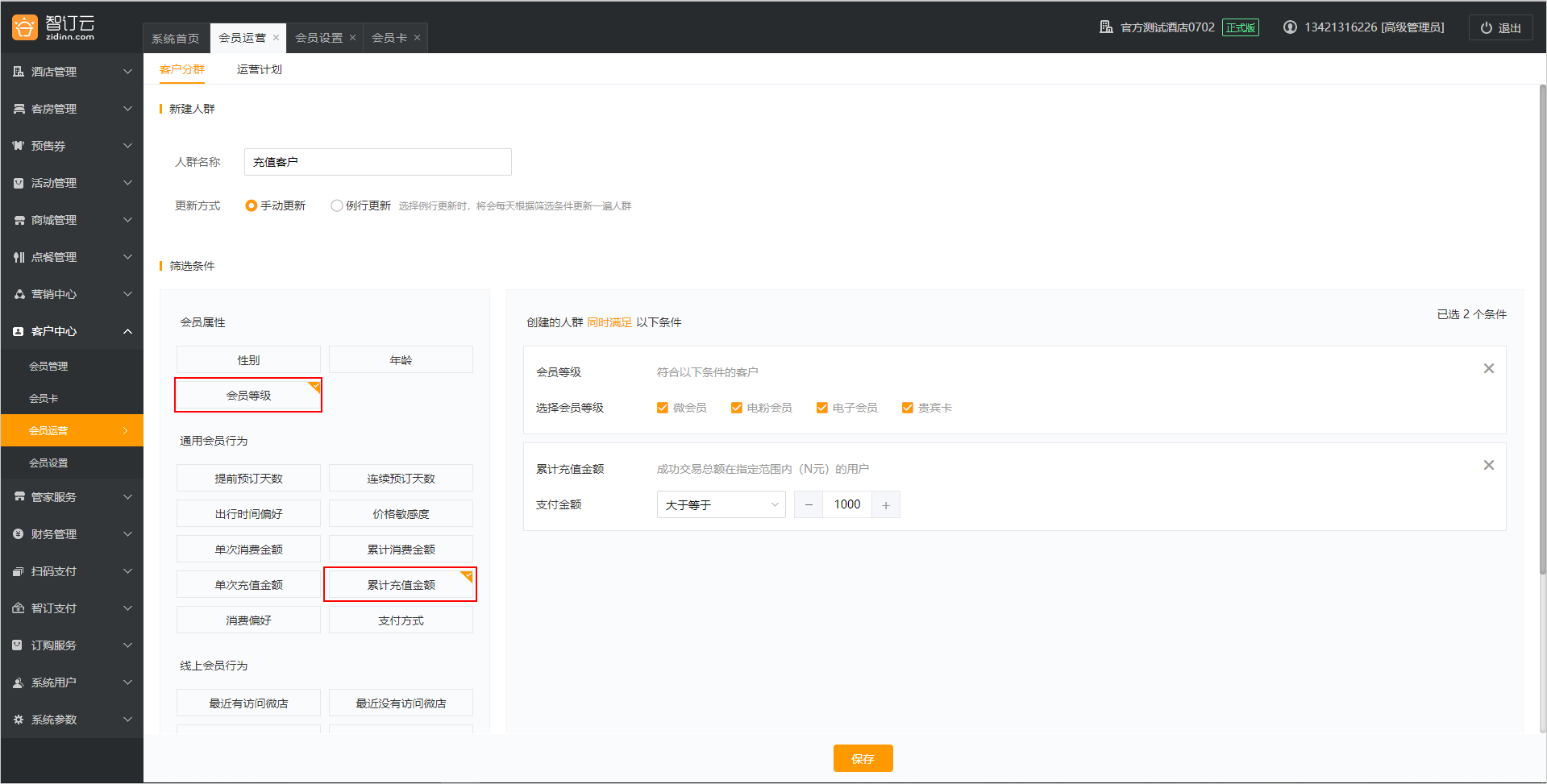 1.使用“客户运营”模块,为充值客户和潜在充值客户分别建立分群,并进行标签管理,设置专属运营计划,自动推送营销信息和权益礼包,实现智能精准营销