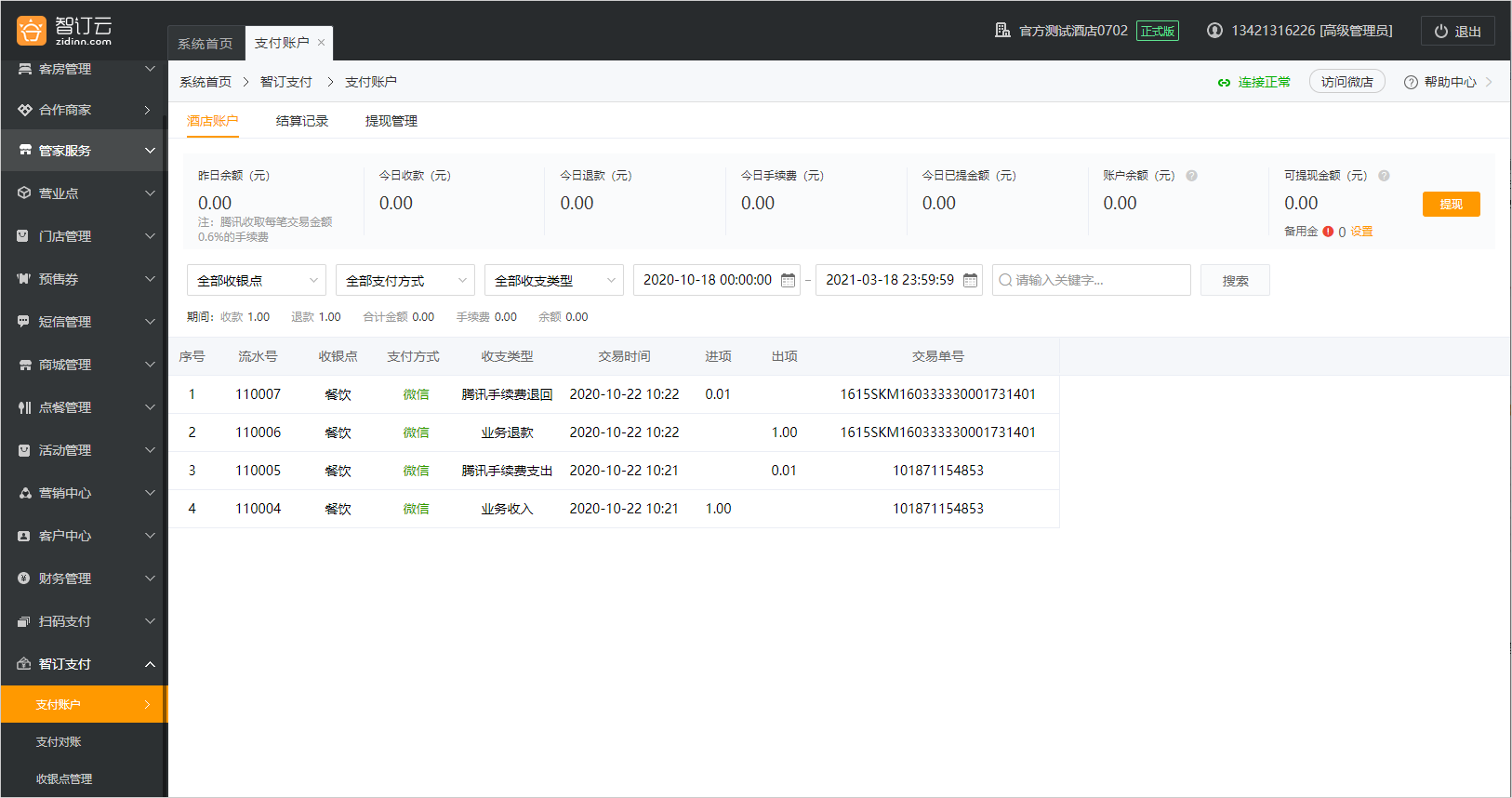 5.管理员可在后台进行查账、对账、提现