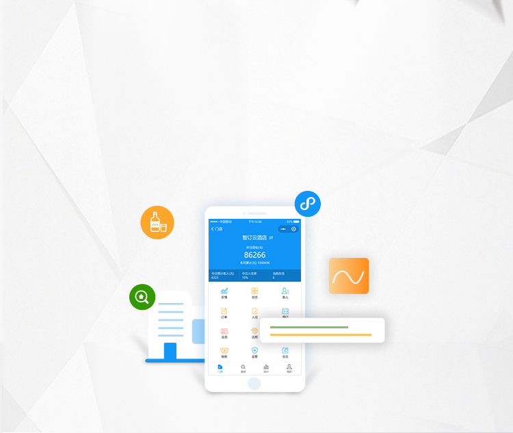 智订云基于微信推出移动PMS小程序,凭借小程序即用即走的优势,移动PMS无需安装,打开即用,用户体验比肩APP,全面提升酒店运营管理效率